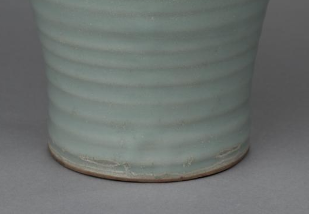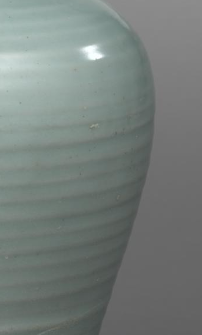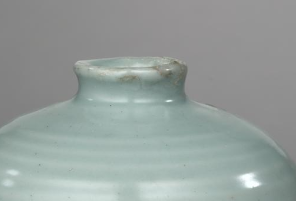 本品规格为23.5 厘米。造型修长优美,整体呈小口、短颈、丰肩、瘦底的典型梅瓶样式。瓶身施有龙泉窑标志性的青釉,釉色温润淡雅,如湖水般清澈莹润,质感细腻。瓶身饰有多道弦纹,弦纹线条规整流畅,与梅瓶的曲线造型相得益彰,既增添了器物的层次感,又凸显出简洁素雅的艺术风格。它体现了南宋龙泉窑在制瓷工艺与审美追求上的高超水准,是南宋龙泉窑瓷器中的代表性器物,具有较高的艺术与历史价值。