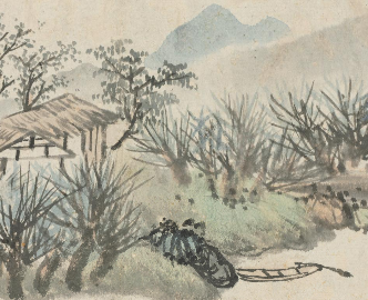 清查士标《查梅壑先生山水册-春溪村居》