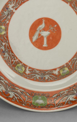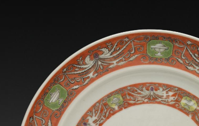 清代瓷器大量出口,矾红描金开光花鸟纹瓷盘作为具有中国特色的瓷器, 通过海上丝绸之路等贸易路线销往欧洲、东南亚等地。在海外市场, 它不仅是实用的生活器具,更是传播中国文化的载体, 让外国友人领略到中国瓷器工艺的精湛和传统文化的魅力。