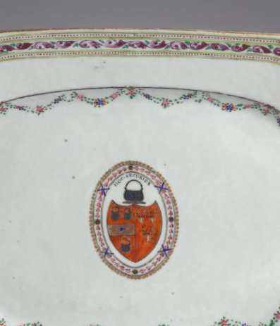 在清代中西方贸易往来频繁的背景下, 带有定制纹章的广彩瓷椭圆盘常被用作礼品。西方商人、贵族或外交使节会定制此类瓷器, 一方面作为礼物赠送给亲朋好友, 以显示独特与珍贵;另一方面, 也可在外交活动中, 作为礼物赠送给对方, 增进双方关系 。