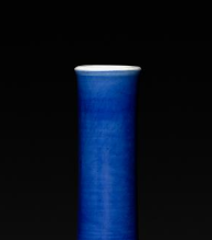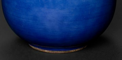 本品规格为43.8 厘米。瓶身整体造型修长优雅,颈部纤细修长,腹部圆润饱满,线条流畅自然,比例协调,尽显端庄大气之态。通体施霁蓝釉,釉色浓艳深沉、均匀纯净,如蓝宝石般璀璨夺目,釉面光滑润泽,质感细腻。简洁的造型与浓郁的霁蓝釉相互映衬,既展现出清代霁蓝釉瓷器工艺的精湛,又体现出典雅庄重的审美风格,是清代单色釉瓷器中颇具代表性的陈设佳品。