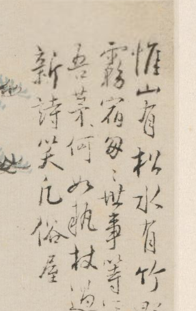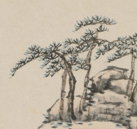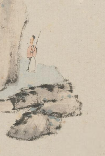 本品规格为21 x 15.8 厘米。主体是一座孤峭的山峰,峰体挺拔高耸,质感坚硬,以简洁的笔墨勾勒出山石的纹理与形态。峰顶生长着几株松树,枝干遒劲,松针细密,为孤峰增添了生机与苍劲之美。山脚下,有屋舍坐落,屋舍样式质朴,周围环绕着树木,更显清幽。远处,淡蓝色的山峦朦胧悠远,与近景的孤峰、屋舍形成层次分明的空间感。画面右侧配有书法题字,字迹流畅,与设色山水相互映衬,整体传递出孤峰之下、松居之旁的静谧清幽意境,展现出萧云从设色山水创作中对山水布局与意境营造的精妙把握。