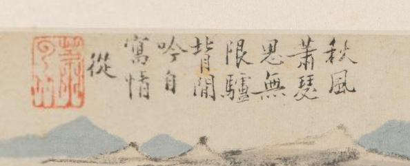 清萧云从《设色山水册-秋溪行旅》