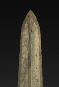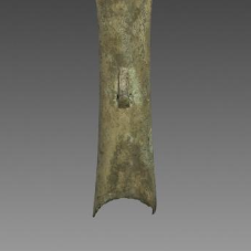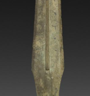 本品规格为3.1厘米。整体以青铜铸造,历经岁月,表面呈现出古朴的锈迹,却更显历史的厚重感。矛头造型修长,前端尖锐锋利,便于刺击;中部有凸起的脊棱,既增强了矛头的强度,又能在刺击时减少阻力、扩大创伤效果;底部用于装柄的部分设计规整,带有穿孔,可通过绳索等与木柄牢固连接,确保在使用过程中不会轻易脱落。