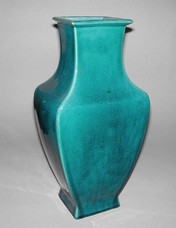 清代是中国瓷器发展的繁荣时期,颜色釉瓷器的烧制技术在继承明代的基础上不断进步。孔雀绿釉作为一种名贵的颜色釉,在清代得到进一步发展,其釉色更加丰富和稳定。清中晚期,民间窑口大量烧制颜色釉瓷器,除满足国内市场需求外,还用于出口。然而,晚清时期西方列强对中国进行经济侵略和文化掠夺,大量中国珍贵文物流失海外,这件孔雀绿釉方瓶就是近代中国文物流失的见证,反映了当时中国文物保护面临的严峻形势。