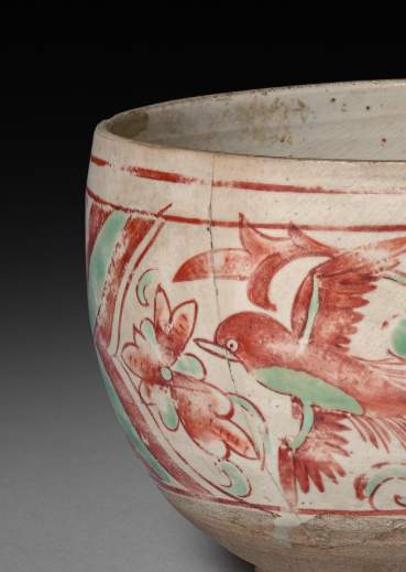 元代红绿彩花鸟纹钵