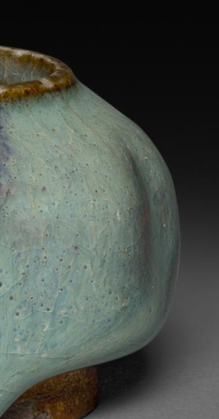 元代钧窑天蓝釉紫斑鸡心罐