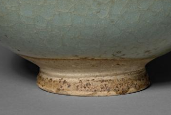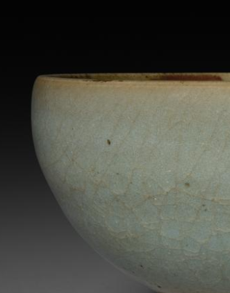 本品规格为直径14.6厘米,高度8.5厘米。整体造型圆润饱满,呈现出典型的碗类形制。其施有钧窑标志性的天青釉,釉色淡雅清新,如天空般澄澈,釉面布满自然且富有层次感的开片纹理,这些开片纵横交错,为器物增添了古朴雅致的韵味。碗的底部为圈足,圈足部分因岁月和使用等原因,呈现出带有岁月痕迹的质感,与上部莹润的天青釉形成对比,更显器物的历史厚重感。