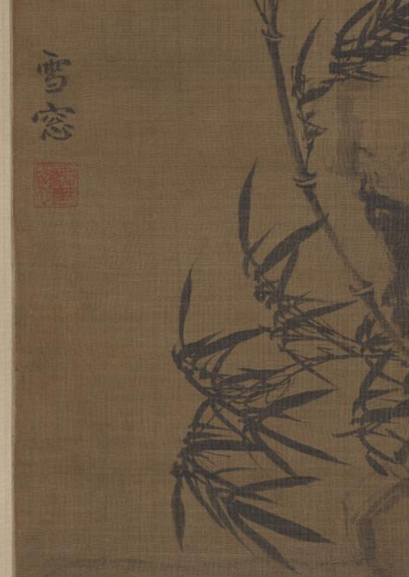 本品规格为77.6 x 45.7 厘米。画面以墨笔绘就,展现出竹子与石、草等景致。竹子的枝干挺拔,竹叶以简洁利落的笔墨刻画,形态灵动,似在风中摇曳,尽显竹子的清逸之姿。旁边的石块以淡墨皴擦,表现出石的质感与体积感,石旁还绘有草叶,与竹子相互映衬,丰富了画面层次。整体布局简洁,笔墨苍劲有力,营造出清幽雅致的氛围,体现了元代文人画中对竹子这一题材的喜爱,以及借竹抒发高洁情怀的艺术追求,展现出元代墨竹画的典型风格与艺术魅力。
