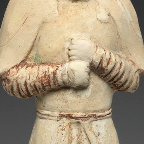 北朝时期,政权更迭频繁,战争不断,这一时期的陶俑制作较为发达,尤其是武士俑,是墓葬文化的重要组成部分。北朝陶俑不仅具有陪葬的功能,也反映了当时的军事制度、服饰文化和雕塑艺术水平。当时的工匠们通过对陶俑的塑造,展现了不同身份、不同职业的人物形象。北朝的陶俑艺术在继承前代的基础上,融合了多民族的文化元素,呈现出独特的艺术风格。然而,近代以来,西方列强对中国进行侵略和掠夺,大量珍贵文物流失海外,这件北朝陶武士俑就是近代中国文物流失的见证,反映了当时文物保护面临的严峻形势。
