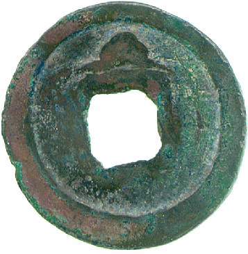 整体造型:呈圆形,中间有方形穿孔,为典型的中国古代铜钱 “外圆内方” 造型,便于穿绳携带。
