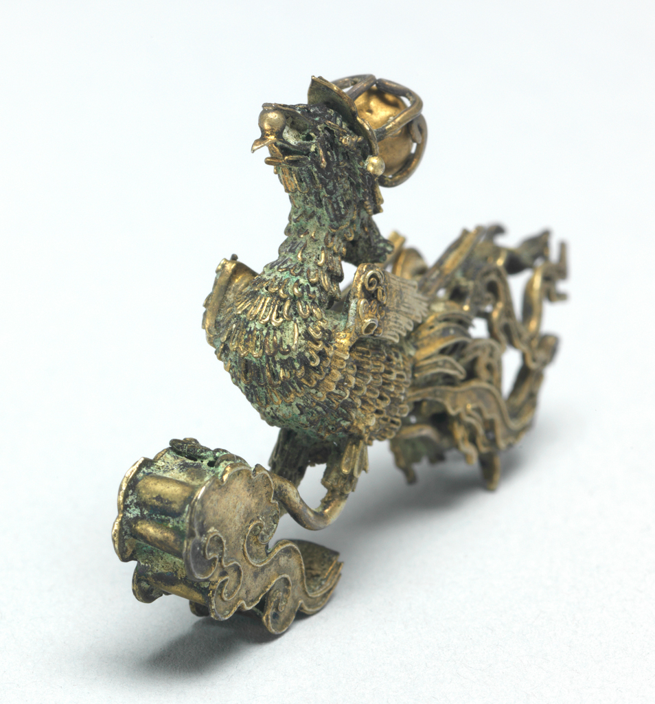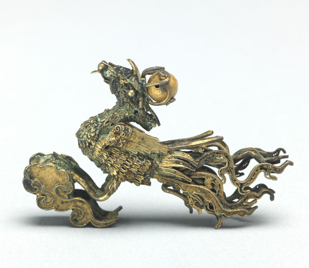 唐代鎏金青铜凤衔珠饰件