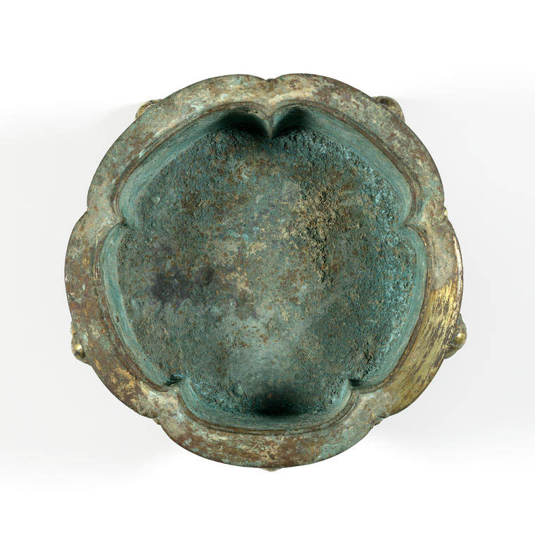整体造型:呈圆形承盘状,底部有多个兽形足支撑,盘口为花边形,整体造型庄重且富有艺术感,兽足的设计增添了器物的威严与灵动。