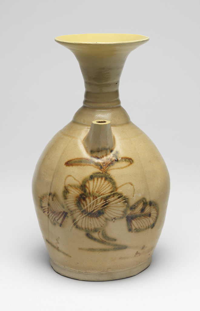 唐代长沙窑青釉褐绿彩花卉纹执壶