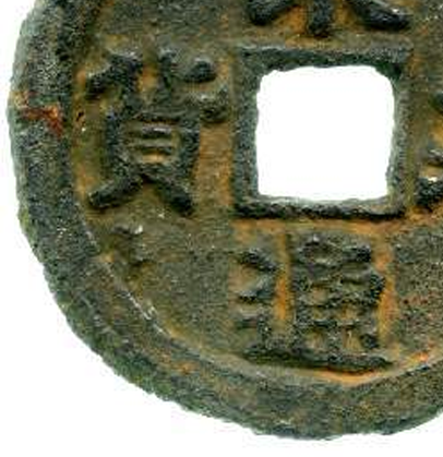 整体造型:为圆形方孔钱,是中国古代钱币的典型形制。钱币整体较为厚重,圆形的轮廓规整,中间方形穿孔大小适中,便于穿绳携带。