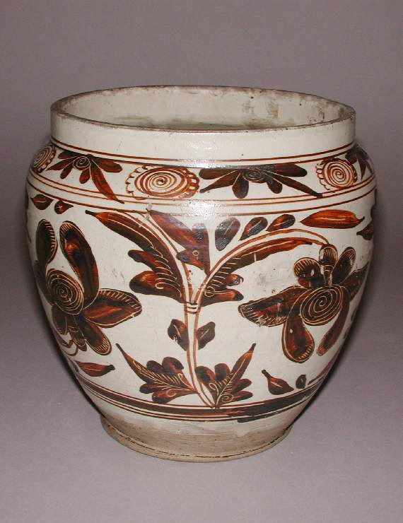 宋代磁州窑白地褐彩花卉纹罐