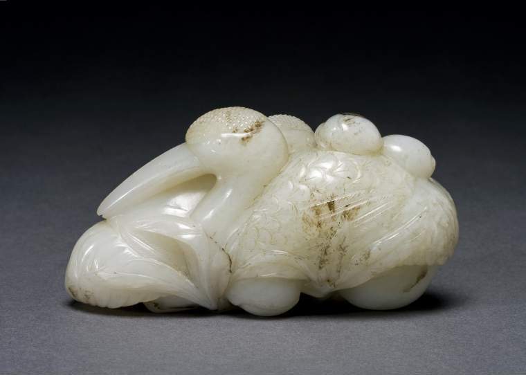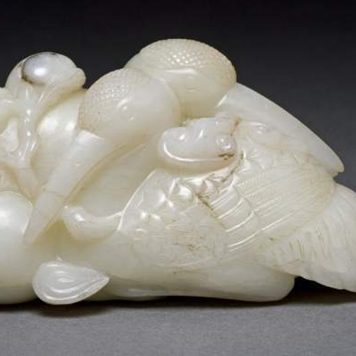 清代是中国玉器发展的鼎盛时期之一,宫廷对玉器极为推崇,造办处集中了大批技艺精湛的玉匠,制作出众多精美绝伦的玉器。同时,民间的玉器制作行业也蓬勃发展,玉器的题材丰富多样,包括人物、动物、花鸟等。鹭鸶在中国传统文化中是长寿、吉祥的象征,常与其他元素组合,表达美好的寓意。这类玉雕摆件不仅是精美的艺术品,也反映了当时人们对美好生活的向往和追求,以及高超的玉器雕刻工艺水平。然而,近代以来,西方列强的侵略和掠夺,加上国内的动荡不安,导致大量珍贵的清代玉器流散海外,这件清代白玉雕鹭鸶衔枝摆件就是中国近代文物流失历史的见证。