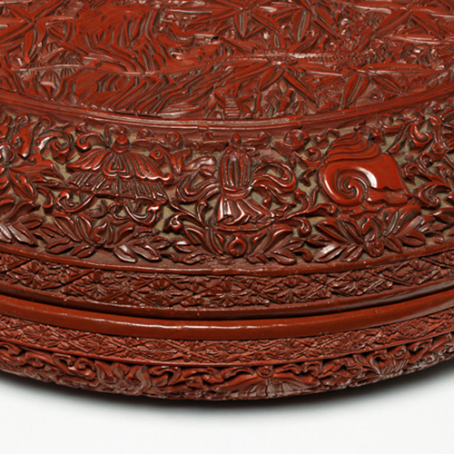 清代乾隆时期,社会稳定,经济繁荣,文化艺术得到极大发展,漆器工艺也达到了很高的水平。剔红作为漆器工艺中的重要品类,在此时备受推崇。松、竹、梅 “岁寒三友” 是中国传统文人喜爱的题材,象征着高洁、坚韧的品格,常被用于各类工艺品的装饰,体现了当时的文化审美和精神追求。此时期的漆器制作工艺精湛,装饰华丽,不仅供宫廷使用,也有部分作为珍贵的工艺品流传到民间乃至海外,反映了清代漆器工艺的辉煌成就以及中外文化交流的情况。