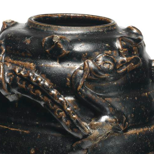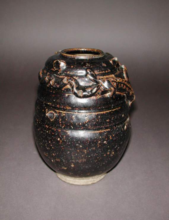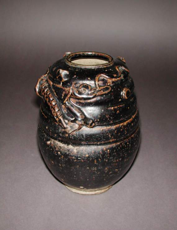 宋代黑釉堆塑龙纹罐