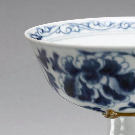 晚清至民国年间,国内局势混乱,经济衰败,许多家庭或藏家因生活所迫,将家中所藏文物出售。这件元代青花缠枝牡丹纹高足碗可能从民间流出,进入文物交易市场,被外国文物贩子或其代理人收购,随后通过海上走私等非法文物贸易途径运往英国,最终被剑桥大学费茨威廉博物馆收藏。