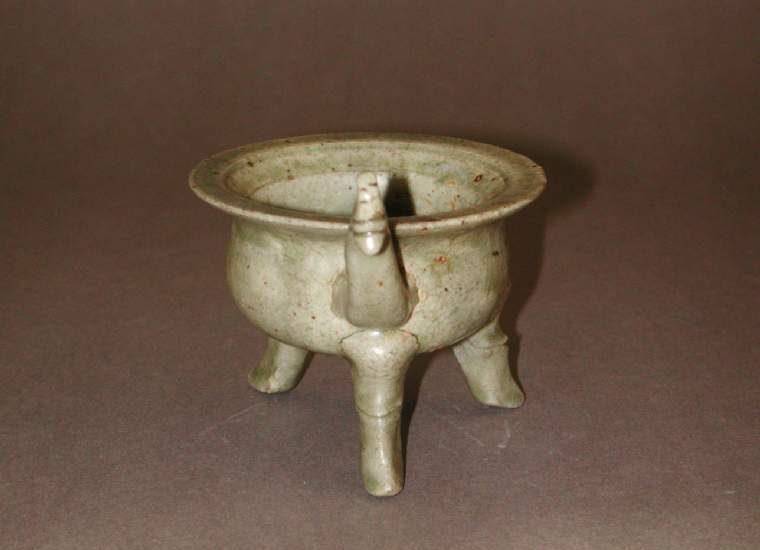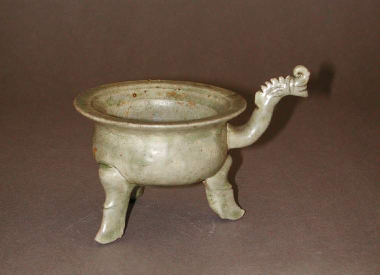 宋代青釉龙首柄三足炉