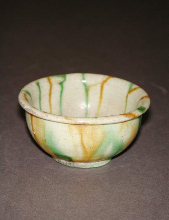 唐代是中国陶瓷发展的重要时期,三彩陶器是唐代陶瓷工艺的杰出代表。三彩陶器以黄、绿、白等多种色彩的釉料装饰陶器,色彩绚丽,造型丰富,广泛应用于日常生活和丧葬陪葬等方面。唐代社会经济繁荣,文化开放包容,手工业发达,三彩工艺在这样的背景下得以迅速发展。三彩制品不仅在国内广受欢迎,还通过丝绸之路等途径远销海外,成为中外文化交流的重要载体。然而,近代以来,西方列强的侵略和掠夺,加上国内的动荡,导致大量珍贵的唐代文物流失海外,这件唐代三彩小盏就是中国近代文物流失历史的见证。