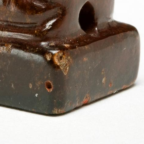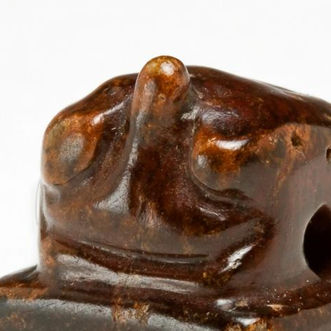材质与色泽:以和田玉为材,玉色呈深褐、黑褐色(受沁后的 “水银沁”“土沁”),局部可见青白色玉质,包浆浑厚油润,既彰显和田玉的温润质地,又因埋藏环境形成的沁色增添了古朴沧桑的历史质感。