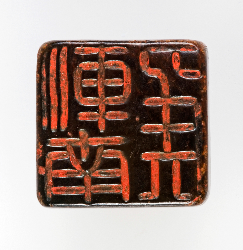 细节:龟钮雕刻写实,龟甲的纹理、龟首的神态(双目圆睁、喙部微张)通过浅浮雕与阴刻技法精细呈现;印面 “王臣之印” 四字为汉代典型缪篆(篆隶结合的印章字体),笔画粗细均匀,转折处圆劲有力,印文布局规整,体现汉代篆刻 “谨严庄重” 的工艺风格;印台侧面可见零星朱砂残留,佐证其曾作为实用印章使用。