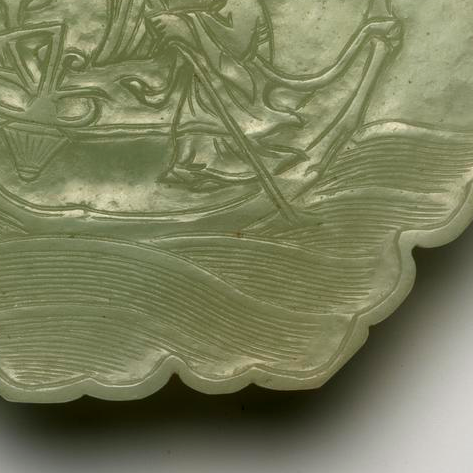 清代和田玉 “再来花甲” 人物渡海纹花口佩