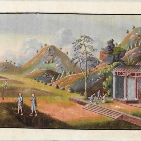 清代广州通草纸《茶园劳作图》册页