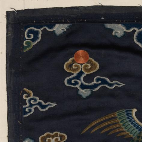 19 世纪末至 20 世纪初,列强发动侵华战争(如八国联军侵华),侵略军在北京等地大肆掠夺宫廷、官宦服饰。此补子原属清代三品官员的 “补服”(官服),可能在战争中被从服饰上剥离,后经不正当文物流转渠道辗转运至英国,最终被剑桥大学费兹威廉博物馆收藏,成为近代中国文物流失海外的典型例证。