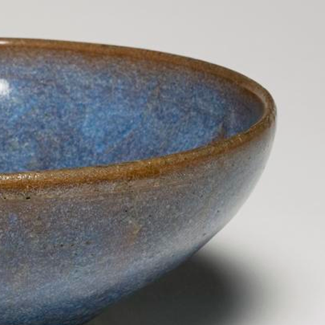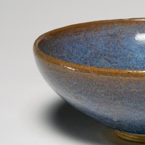 金代是钧窑工艺发展的重要阶段,钧窑始烧于宋代,金、元时期延续烧造。金代钧窑以 “民钧” 为主,器型小巧(如碗、钵、碟),釉色以天蓝、天青、月白为基调,通过 “铁、铜呈色” 与 “还原焰烧制” 产生乳浊蓝光与窑变紫斑,打破宋代单色瓷格局,开创厚釉彩斑的新审美。此时,钧窑产品不仅满足民间日常需求,还因釉色 “千变万化、独一无二” 成为文人与贵族追捧的艺术品,“纵有家财万贯,不如钧瓷一片” 的俗语正反映其珍贵性。此碗既见证金代钧窑 “工艺成熟、釉色绝美” 的技术突破,也映射金代社会对 “自然窑变” 审美与 “实用器物艺术化” 的生活追求,是研究金代陶瓷史、工艺美学与社会文化的关键实物。