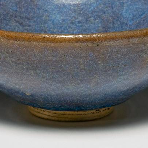 材质与色泽:胎质为粗瓷土,质地坚致;施天蓝釉,釉色呈深邃的天蓝色,釉面匀净光滑,因 “二液分相” 工艺呈现乳浊不透明的蛋白石光泽,光线下透现柔和的蓝光,尽显钧窑 “窑变” 釉色的神秘美感;圈足端无釉露胎,呈红褐色,与蓝色釉面形成鲜明色彩对比,更显古朴典雅。