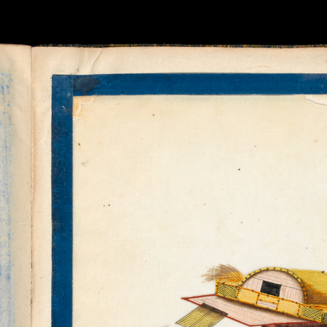 清代(尤其是乾隆二十二年 “一口通商” 后),广州成为中国对外交流的唯一窗口,商贸繁荣催生了大量外销艺术品。通草画因 “便携性 + 观赏性” 成为外销画主流:一方面,西方贵族对 “东方水乡、田园生活” 充满好奇,通草画成为他们了解中国社会的视觉载体;另一方面,广州画匠融合 “中国工笔设色” 与 “西方透视写实”,创造出独特的艺术风格。此件《水乡船景图》既迎合欧洲对 “东方农耕文明” 的审美想象,又真实记录了清代水乡的船只构造与鸭群养殖场景,是 “海上丝绸之路” 文化交流的缩影,见证了中西艺术在商业语境下的碰撞与融合,对研究清代社会生活、外贸史与艺术史均具重要价值。