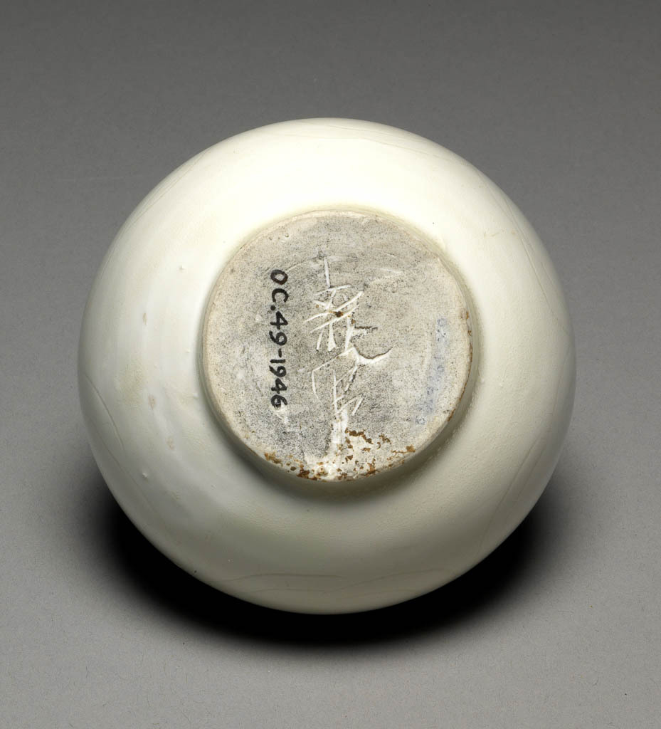 19 世纪末至 20 世纪初,列强发动侵华战争(如八国联军侵华等),对中国北方定窑遗址及民间收藏的宋代瓷器展开疯狂掠夺。这件定窑盖罐因带有 “新官” 款(定窑 “官” 款瓷为宫廷或高级别用器,工艺与等级极高),推测从定窑相关遗址或古代藏家处被非法夺取,后经复杂的文物流转链条辗转运至英国,最终入藏剑桥大学费兹威廉博物馆,成为近代中国文物流失海外的典型见证。