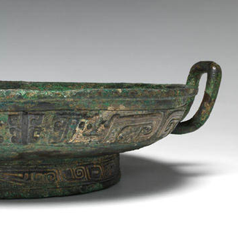 整体造型:呈圆形浅盘,两侧设对称环形耳,底部为圈足,器型规整庄重,既符合西周青铜礼器 “端庄肃穆” 的造型规范,又具备祭祀、宴饮时 “盛水 / 承物” 的实用功能,是西周贵族礼仪活动的核心载体。