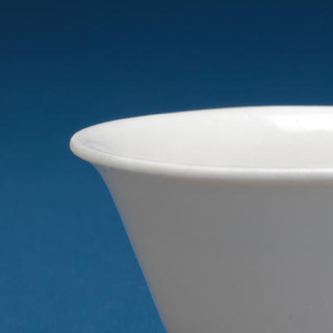 整体造型:呈 “撇口、深腹、小圈足” 的杯形,器型规整对称,线条流畅自然。撇口设计方便持握与倾倒液体,深腹可容纳适量茶饮或酒液,小圈足稳固支撑于案头,兼具实用功能与素雅的艺术审美,是明代文人士大夫日常饮茶、饮酒的典型瓷具。