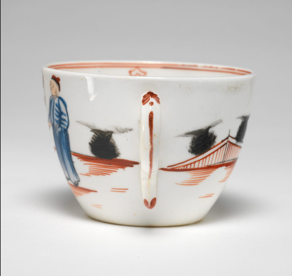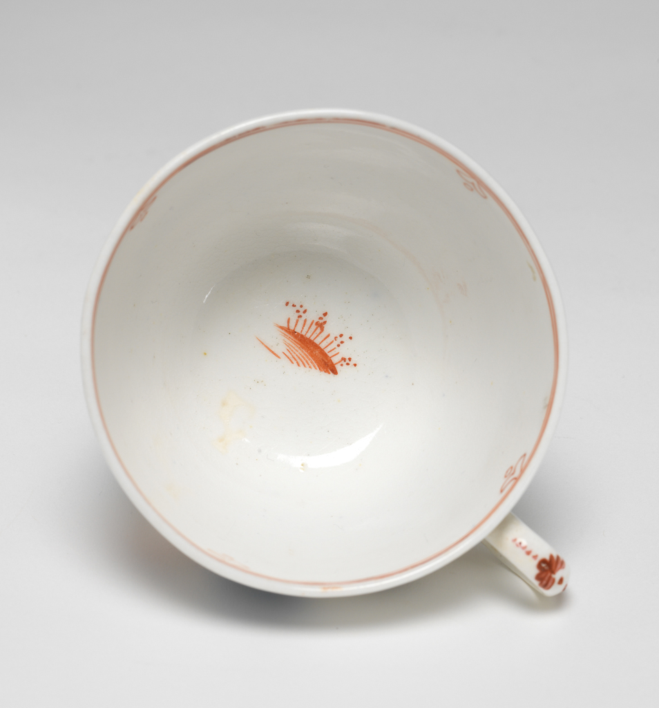 整体造型:由 “单柄杯” 与 “敞口碟” 组成。杯为深腹、侈口、单柄,碟为圆形敞口,器型符合欧洲饮茶习惯(18 世纪欧洲流行中国茶,配套瓷杯碟需适配握持与承托);造型规整,比例协调,兼具实用功能与装饰性。