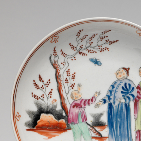 清代中后期,广州作为 “一口通商” 的外贸中心,广彩瓷因 “色彩艳丽、题材迎合欧洲审美” 成为外销热门。此套杯碟通过正常的海上贸易渠道流入英国,后经私人收藏或艺术市场流转,最终被剑桥大学费兹威廉博物馆纳入馆藏,成为研究清代外销艺术与中西文化交流的重要实物资料。