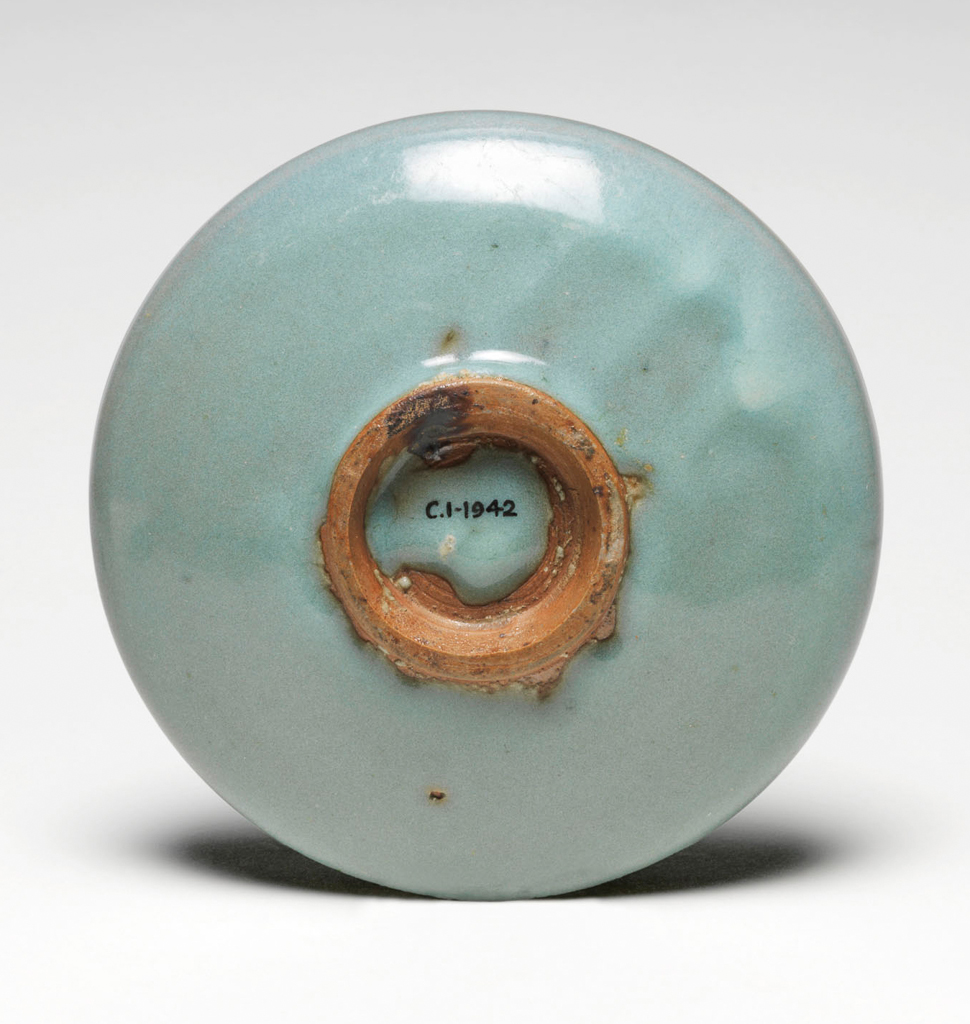 19 世纪末至 20 世纪初,列强发动侵华战争(如八国联军侵华等),对中国钧窑核心产区河南禹州及各地收藏的钧窑珍品疯狂掠夺。此天青釉盘工艺精湛,是宋代钧窑典型器物,被侵略者非法夺取后,经文物流转商的不正当渠道辗转运至英国,最终入藏剑桥大学菲茨威廉博物馆,成为近代中国文物流失海外的重要见证。