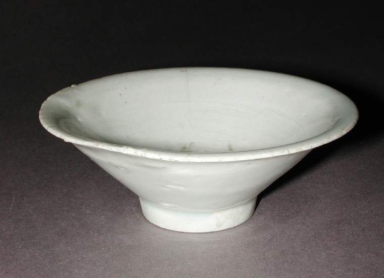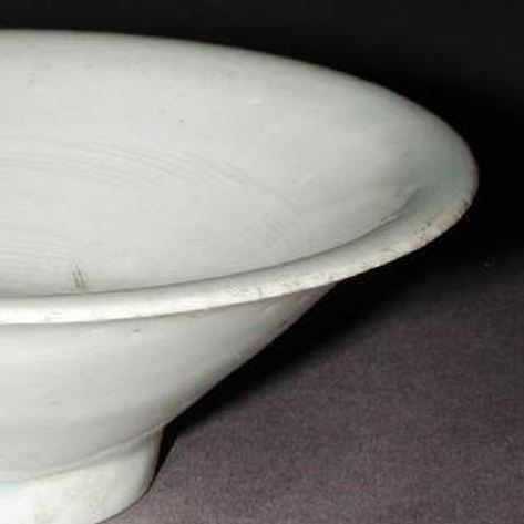 整体造型:呈斗笠形,敞口、斜腹内收、小圈足,器型轻盈舒展,线条流畅自然,既具备 “盛食” 的实用功能,又因造型简洁雅致,契合宋代 “尚简” 的审美风尚,是北宋中晚期湖田窑青白瓷的典型器型。