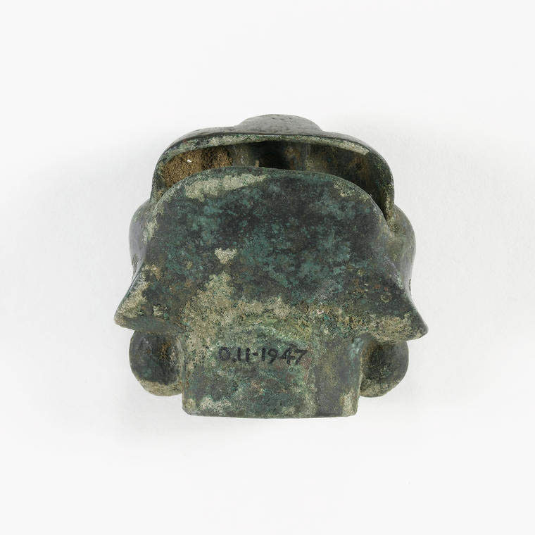 战国时期是中国历史上一个大变革、大发展的时期,社会动荡不安,但同时也是文化艺术繁荣发展的时期。青铜器在战国时期依然是重要的礼器和装饰用品,其铸造工艺和装饰技艺都达到了很高的水平。错银工艺作为战国时期青铜器装饰的重要工艺之一,广泛应用于各种青铜器上,使得青铜器的装饰更加精美华丽。兽首形饰在战国时期可能是用于车马、器物等的装饰部件,体现了当时人们对器物装饰的重视和对艺术美的追求。同时,战国时期的人们对动物有着特殊的崇拜和喜爱,兽首形饰的出现也反映了当时的动物崇拜文化和审美观念。这件战国错银青铜兽首形饰,不仅是战国时期青铜工艺的杰出代表,也是研究战国时期社会文化、艺术审美和工艺技术的重要实物资料,它见证了战国时期的辉煌与多元,却因列强的侵略掠夺,被迫远离故土,成为海外博物馆的藏品,这也从一个侧面反映了近代中国所遭受的屈辱和文化遗产的巨大损失。