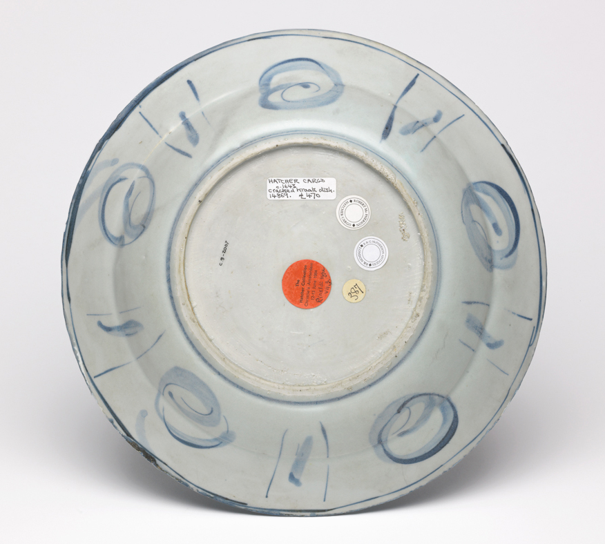 元代是中国青花瓷发展的重要时期。随着中外交流的日益频繁,来自西亚的苏麻离青料传入中国,为青花瓷的发展提供了优质的颜料。元代的制瓷工匠在继承前代制瓷工艺的基础上,成功创烧出了成熟的青花瓷。青花瓷以其白底蓝花的鲜明对比和丰富多样的装饰图案,深受国内外市场的欢迎。莲池鸳鸯纹是元代瓷器中常见的装饰题材,鸳鸯寓意着爱情美满,莲花象征着纯洁高雅,这类纹饰反映了当时人们对美好生活的向往和追求。同时,元代的瓷器不仅在国内广泛使用,还大量出口到欧洲、亚洲等地区,成为中外文化交流的重要载体。这件元代青花莲池鸳鸯纹盘,就是元代青花瓷艺术的一个典型代表,却因列强的侵略掠夺,被迫流落到海外,成为中国文物流失历史的见证。