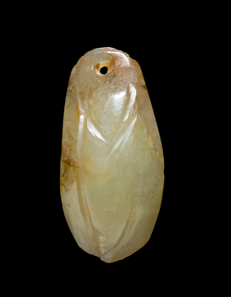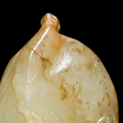 细节:表面雕刻有细微的纹理,模拟树叶的脉络,线条细腻流畅,虽不繁复却极为传神,展现了宋代玉雕工匠对自然形态的细致观察和精湛技艺。穿孔处打磨光滑,与整体造型浑然一体,体现了工匠对细节的极致追求。