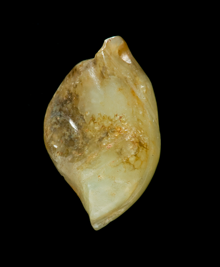 宋代是中国玉器发展的重要时期,玉器从唐代的贵族专属逐渐走向世俗化,成为文人士大夫和普通民众喜爱的饰品与收藏品。宋代玉雕工艺在继承前代的基础上,更加注重写实和自然,题材多取自生活和自然景物,如花鸟、树叶、动物等。玉器的制作不仅体现了工匠的技艺水平,也反映了当时社会的审美观念和文化风尚。这件玉叶形佩就是宋代玉器世俗化、自然化的典型代表,它见证了宋代玉器工艺的发展,却因近代中国的屈辱历史,被迫流落在外。