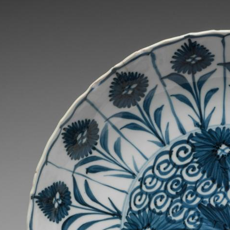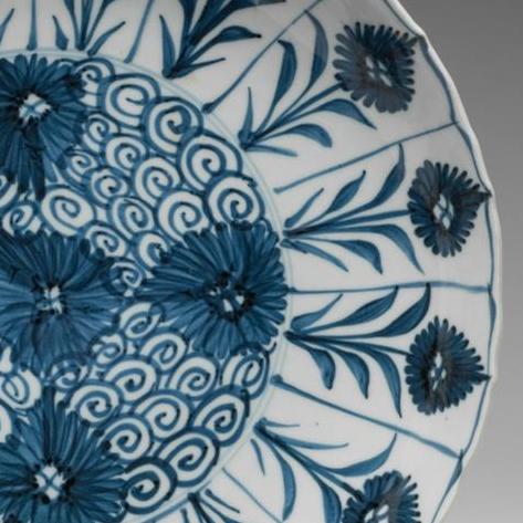 整体造型:盘呈圆形,敞口,浅腹,圈足,造型规整,符合明代瓷器的典型风格,兼具实用与审美价值。盘口边缘呈花瓣状,增加了造型的层次感和美观度。