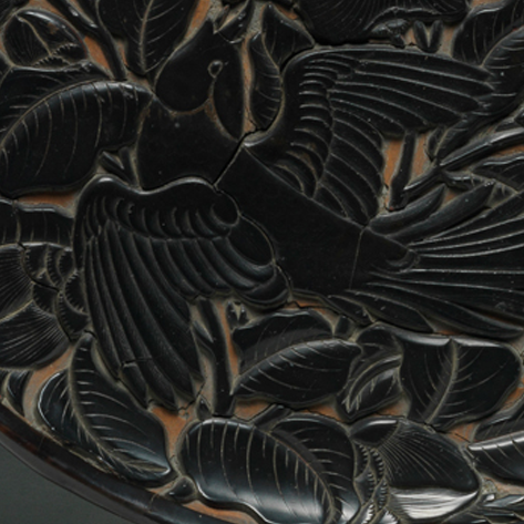 元代是中国漆器发展的重要时期,剔漆工艺在此时达到了很高的水平。剔黑作为剔漆的一种,是在器物表面髹涂多层黑色漆,然后用刀具剔除多余的漆层,从而形成纹饰。元代的剔黑漆器以其精湛的工艺、丰富的纹饰和独特的艺术风格著称,成为中国漆器艺术的代表之一。花鸟纹是元代漆器常见的装饰题材,反映了当时人们对自然美的追求和对生活的热爱。这件剔黑花鸟纹盘是元代漆器工艺的杰出代表,体现了元代制漆工艺的高超水平,却因列强的侵略掠夺而流落在外,成为中国文物流失历史的见证。