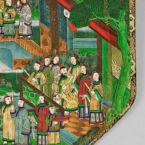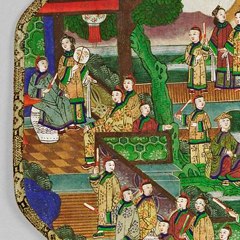 19 世纪末至 20 世纪初,西方列强发动多次侵华战争,如八国联军侵华战争,其军队与文物贩子在中国境内大肆掠夺文物。这件清代彩绘人物故事纹八角团扇很可能在对皇家或贵族府邸的洗劫中被英国侵略者获取,后经海上运输辗转至英国,多次转手后流入剑桥大学费兹威廉博物馆。当时中国国力衰微,无力保护这些文化瑰宝,导致大量文物流失海外。