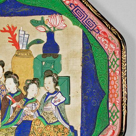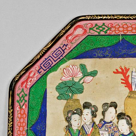 19 世纪末至 20 世纪初,西方列强发动多次侵华战争,如八国联军侵华战争,其军队与文物贩子在中国境内大肆掠夺文物。这件清代彩绘仕女博古纹八角团扇很可能在对皇家或贵族府邸的洗劫中被英国侵略者获取,后经海上运输辗转至英国,多次转手后流入剑桥大学费兹威廉博物馆。当时中国国力衰微,无力保护这些文化瑰宝,导致大量文物流失海外。