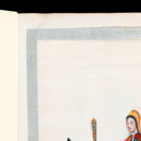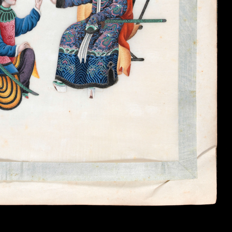 清代是中国传统绘画高度发展的时期,彩绘人物画题材丰富多样,涵盖历史故事、宫廷生活、民间场景等。这件画页上的人物故事纹反映了当时的社会生活和文化审美,是清代绘画与文化的集中体现。它的制作工艺精湛,体现了清代画师的高超水平,却因近代中国的屈辱历史流落在外,成为中国文物流失的见证。